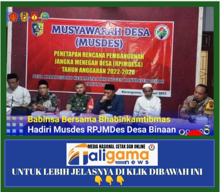 DEMAK, TALIGAMANEWS.COM – Babinsa Desa Karangsono Koramil 12/Mranggen Sertu Ahmad Muslih hadiri Musyawarah Desa dalam rangka pembahasan dan penetapan Rencana Pembangunan Jangka Menengah Desa ( RPJMDes ) Tahun 2022– 2023 di aula Kantor Desa Karangsono Kecamatan Mranggen Kabupaten Demak. Rabu , (12/04/2023) .