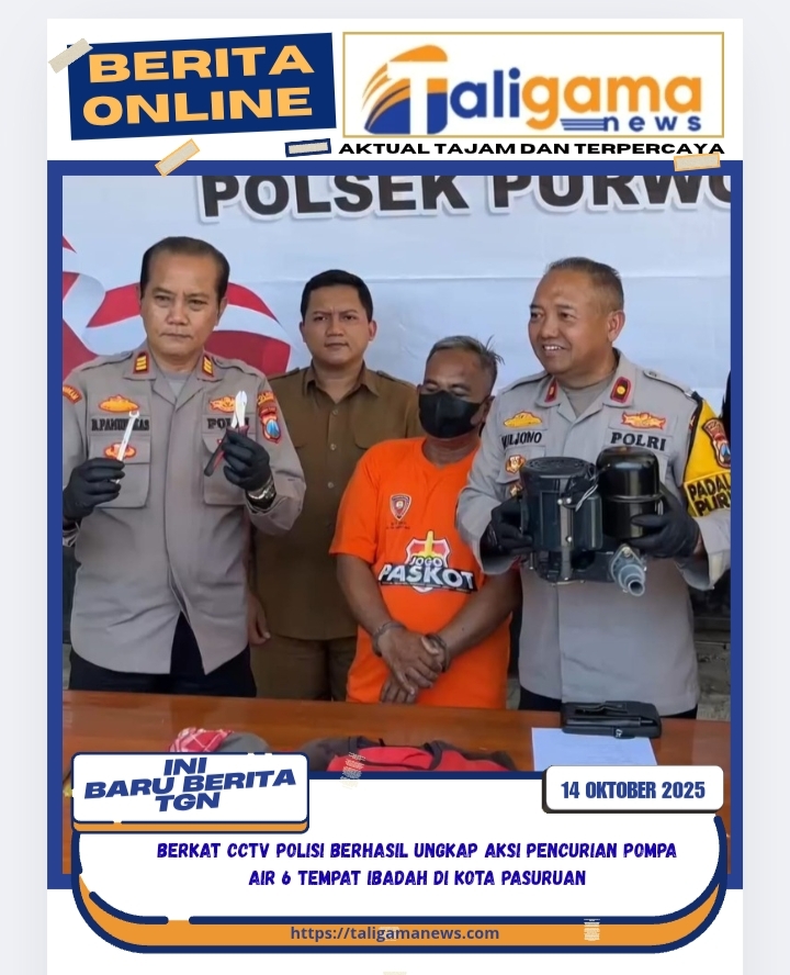 Berkat rekaman kamera pengawas di Musholla As-Siddiq, petugas Polsek Purworejo Polres Pasuruan Kota berhasil mengungkap kasus pencurian pompa air yang terjadi di enam tempat kejadian perkara (TKP) berbeda di wilayah Kota Pasuruan.