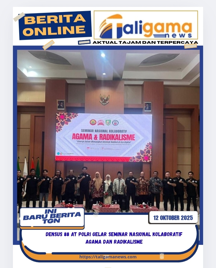 BENGKULU, TALIGAMA,ID,-Densus 88 AT Polri melalui Direktorat Pencegahan berkolaborasi dengan UIN Fatmawati Sukarno Bengkulu dan Badan Kesbangpol Provinsi Bengkulu menggelar Seminar Nasional Kolaboratif Agama dan Radikalisme dengan tema “Sinergi dalam Menangkal Ideologi Radikal di Era Digital” pada Kamis, 9 Oktober 2025.