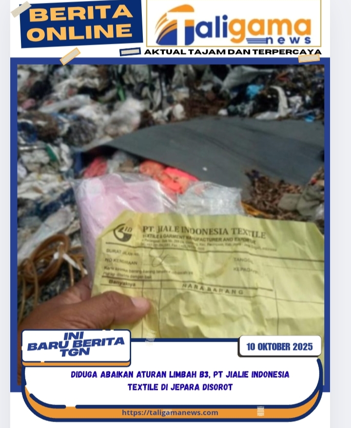 JEPARA, TALIGAMA.ID,– Dugaan penyimpangan dalam pengelolaan limbah bahan berbahaya dan beracun (B3) muncul di tubuh perusahaan tekstil PT Jialie Indonesia Textile, yang beroperasi di wilayah Kabupaten Jepara, Jawa Tengah. Berdasarkan hasil penelusuran sejumlah pihak yang melakukan kontrol sosial terhadap kegiatan industri tersebut, ditemukan indikasi kuat adanya pelanggaran terhadap ketentuan pengelolaan limbah sebagaimana diatur dalam peraturan perundang-undangan yang berlaku.