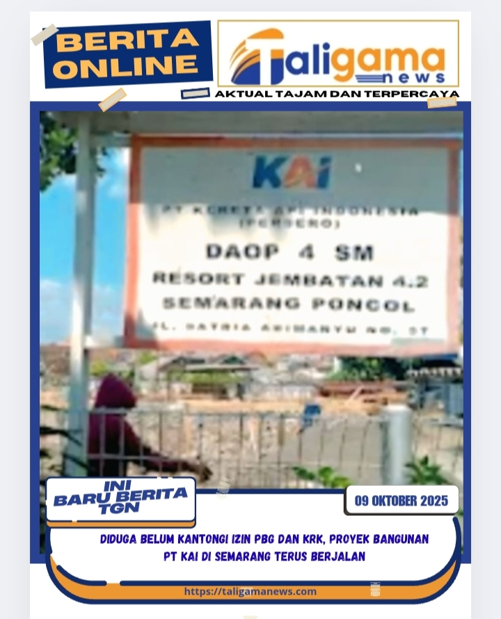 SEMARANG, TALIGAMA.ID,— Proyek pembangunan gedung milik PT Kereta Api Indonesia (KAI) di Jalan Satria Abimanyu No. 37, Kelurahan Plombokan, Kecamatan Semarang Utara, diduga belum mengantongi izin Persetujuan Bangunan Gedung (PBG) dan Keterangan Rencana Kota (KRK). Padahal, kedua dokumen tersebut merupakan syarat wajib sebelum pelaksanaan pembangunan sebagaimana diatur dalam peraturan perundang-undangan.