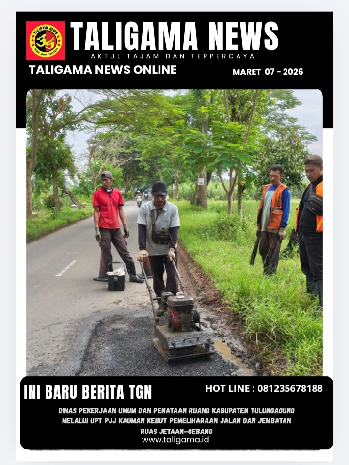 TULUNGAGUNG, TALIGAMA.ID,– Dinas Pekerjaan Umum dan Penataan Ruang (PUPR) Kabupaten Tulungagung melalui UPT PJJ (Pemeliharaan Jalan dan Jembatan) Kauman terus mengintensifkan pemeliharaan rutin pada ruas Jetaan–Gebang. Upaya ini merupakan bentuk komitmen pemerintah daerah dalam menjaga kualitas infrastruktur jalan dan jembatan, khususnya di tengah musim hujan yang rawan menimbulkan kerusakan.