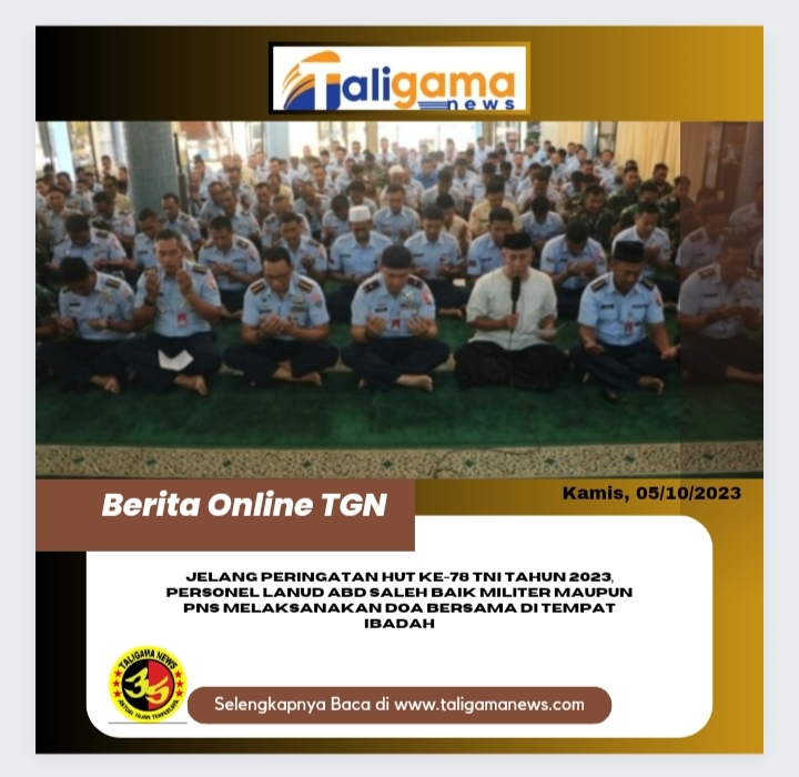 MALANG, TALIGAMA.COM – Jelang Peringatan HUT ke-78 TNI tahun 2023, personel Lanud Abd Saleh baik militer maupun PNS melaksanakan doa bersama di tempat ibadah masing-masing, Senin (2/10/2023).