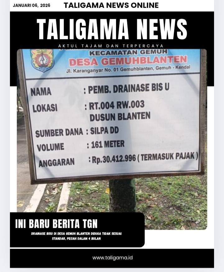 KENDAL, TALIGAMA.ID,- Proyek pembangunan drainase Bisu mengalami kerusakan hanya dalam waktu kurang dari 4 bulan setelah selesai dibangun dan diduga tidak sesuai dengan standar yang ditetapkan.