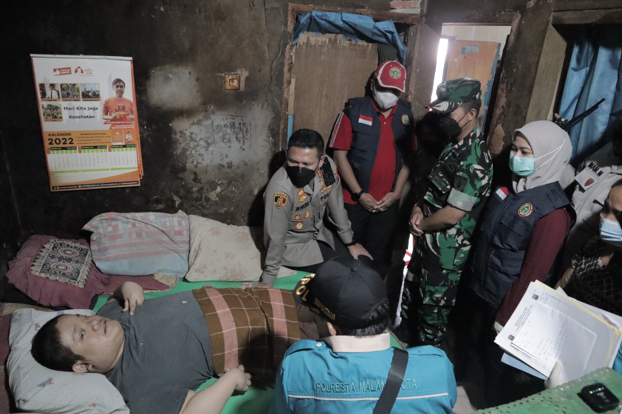 Kapolresta Malang Kota Kombes Pol Budi Hermanto bersama Dandim 083 Kota Malang, PPNI Kota Malang, dan rombongan mengunjungi rumah perwakilan penyandang disabilitas di wilayah Lesanpuro kecamatan. Kedungkandang Kota Malang.