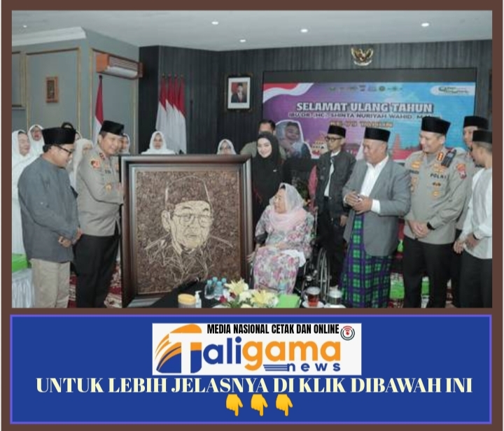 MALANG, TALIGAMANEWS.COM – Mengenang tokoh Muslim dan Politisi Indonesia Alm. Dr.(H.C) K.H. Adurrahman Wahid Kapolda Jawa Timur Irjen Pol.Dr. Toni Harmanto,M.H memberikan sebuah poster Gus Dur (sapaan akrab K.H. Adurrahman Wahid ) kepada Hj. Sinta Nuriyah Wahid, yang merupakan Istri mendiang Presiden Keempat RI itu.