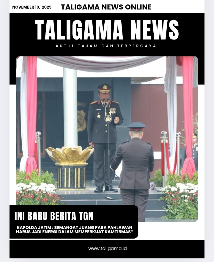SURABAYA, TALIGAMA.ID,– Kepolisian Daerah Jawa Timur menggelar Upacara Peringatan Hari Pahlawan Nasional Tahun 2025 di Lapangan Upacara Mapolda Jatim, Senin (10/11/2025.