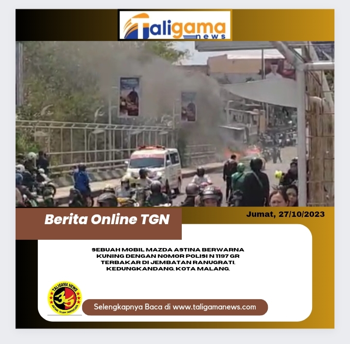 KOTA MALANG, TALIGAMA.COM – Sebuah mobil Mazda Astina berwarna kuning dengan nomor polisi N 1197 GR terbakar di Jembatan Ranugrati, Kedungkandang, Kota Malang, Jumat (27/10/2023). Diduga kebakaran tersebut disebabkan oleh mesin kendaraan yang mengalami overheat.