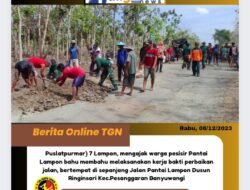 Prajurit Puslatpurmar 7 Lampon Bersama Warga Kampung Baru Lampon Laksanakan Kerja Bakti Jawa Timur|6 Desember 20236 Desember 2023oleh Tim Admin BANYUWANGI, TALIGAMA.COM – Pusat Latihan Pertempuran Marinir (Puslatpurmar) 7 Lampon, mengajak warga