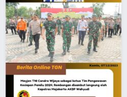 Cek Kesiapan Pengamanan Pemilu, Timwas Mabes TNI Apresiasi Sinergitas Kodim dan Polres Mojokerto Jawa Timur|7 Desember 20237 Desember 2023oleh Tim Admin MOJOKERTO, TALIGAMA.COM – Pemilu 2024 yang akan dilaksanakan pada Februari tahun depan