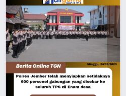 Polres Jember Kerahkan 600 Personel Gabungan untuk Amankan Pilkades Serentak Jawa Timur|25 September 202325 September 2023oleh Tim Admin JEMBER, TALIGAMA.COM– Demokrasi tingkat desa berupa Pemilihan Kepala Desa ( Pilkades )