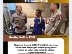 Kapolres Malang Bersama Muspika dan Relawan Segera Renovasi Rumah Keluarga Korban Kanjuruhan Jawa Timur|25 September 202325 September 2023oleh Tim Admin MALANG, TALIGAMA .COM – Kapolres Malang, AKBP Putu Kholis Aryana, melakukan kunjungan