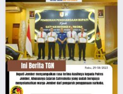 Bupati Apresiasi Inovasi Satreskoba Polres Jember Berikan Ruang Konsultasi Penyalahgunaan Narkoba Jawa Timur|30 Agustus 202330 Agustus 2023oleh Tim Admin JEMBER, TALIGAMA.COM – Inovasi Satreskoba Polres Jember dalam memberikan layanan konsultasi penyalahgunaan