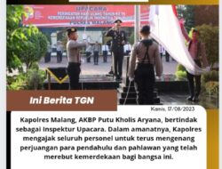 Polres Malang Gelar Upacara Peringati Hari Kemerdekaan RI ke-78 Jawa Timur|18 Agustus 202318 Agustus 2023oleh Tim Admin MALANG, TALIGAMA.COM – Kepolisian Resor Malang, Polda Jatim, menggelar upacara bendera dalam