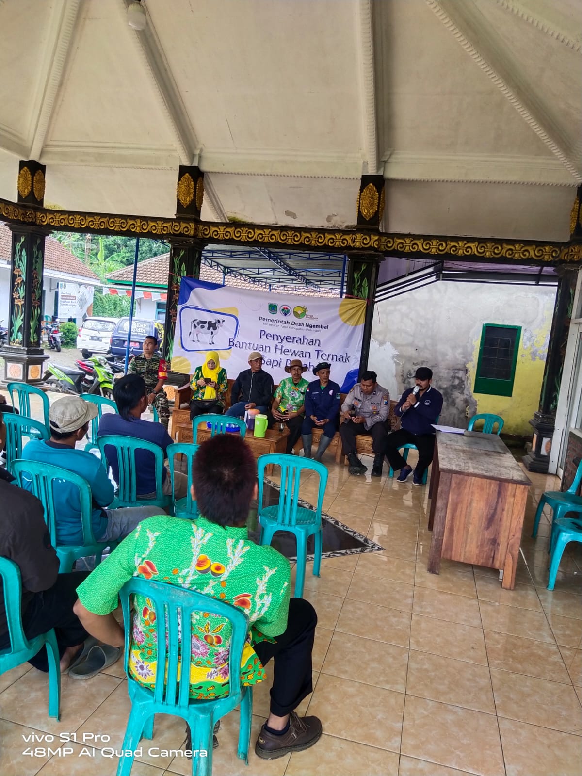 PEMDES DESA NGEMBAL DI DAMPINGI BABINSA DAN BABINKAMTIBMAS MENYALURKAN BANTUAN TERNAK SAPI KEPADA POKMAS PROGRAM KETAHANAN PANGAN SEKTOR HEWANI ANGGARAN DD DESA TA 2022.