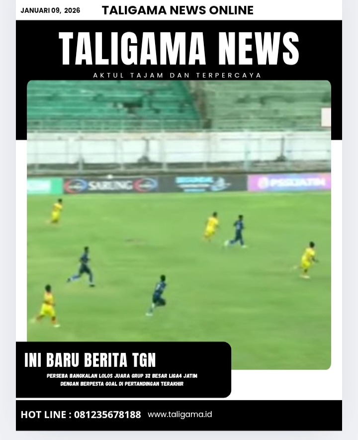 BANGKALAN, TALIGAMA.ID _ Perseba Bangkalan resmi lolos 32 besar babak penyisihan Liga4 Jawa Timur setelah berpesta goal dalam pertandingan terakhirnya melawan putra jaya fc dengan sekor 8 – 0.,jum’at (09-01-2026)