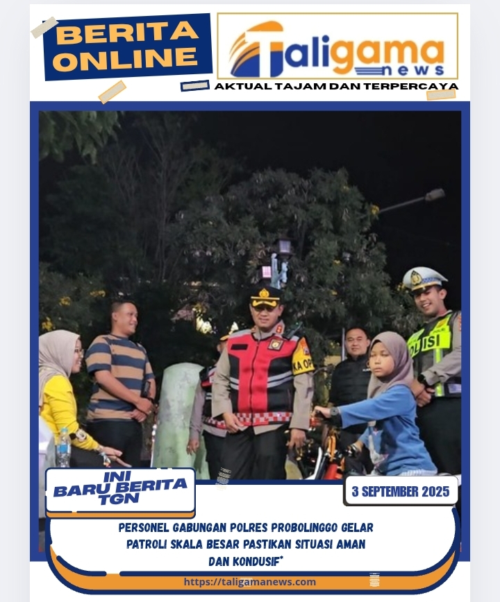 PROBOLINGGO, TALIGAMA.ID,- Polres Probolinggo Polda Jawa Timur menggelar patroli skala besar di wilayah Kabupaten Probolinggo untuk memastikan situasi aman dan kondusif, Selasa (2/9/2025) malam.
