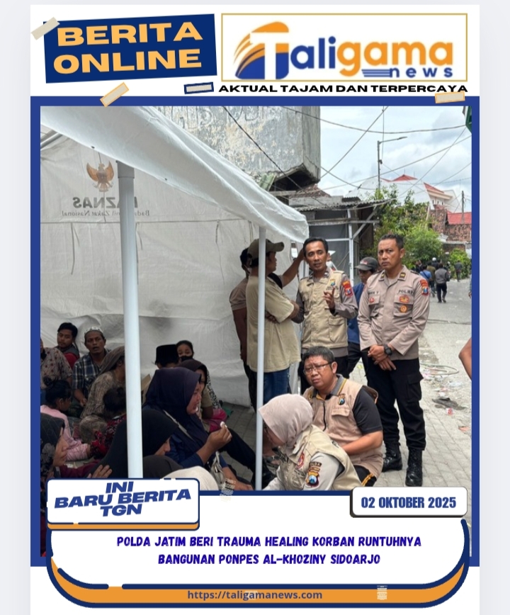 SIDOARJO, TALIGAMA.ID,– Kepolisian Daerah Jawa Timur melalui Biro Sumber Daya Manusia (SDM) menggelar kegiatan trauma healing bagi para penyintas serta keluarga korban runtuhnya bangunan Pondok Pesantren Al-Khoziny, Buduran, Sidoarjo.