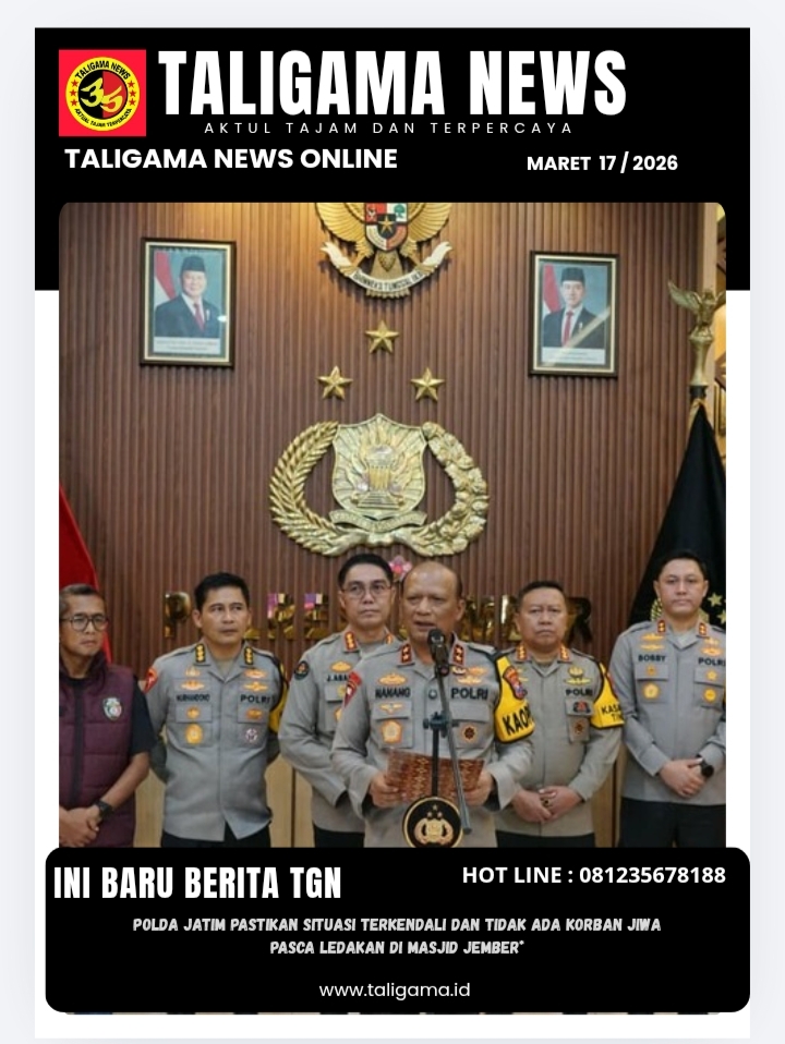 JEMBER, TALIGAMA.ID,- Kapolda Jawa Timur Nanang Avianto menyampaikan perkembangan terkait peristiwa ledakan yang terjadi di salah satu masjid di Kecamatan Patrang, Kabupaten Jember, pada Senin (16/3/2026) lalu sekitar pukul 20.00 WIB.