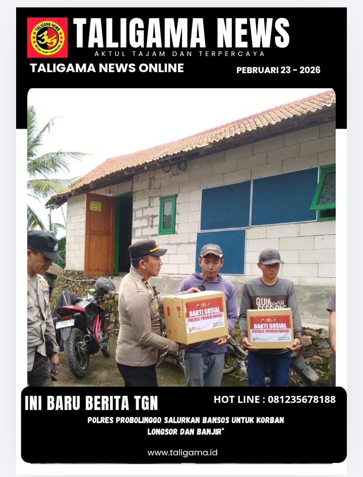 PROBOLINGGO, TALIGAMA.ID,– Polres Probolinggo Polda Jawa Timur menyalurkan bantuan sosial kepada masyarakat terdampak bencana alam tanah longsor di Kecamatan Kotaanyar dan banjir di Kecamatan Kraksaan, Minggu (22/2/2026).