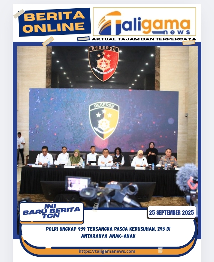 JAKARTA, TALIGAMA.ID,– Polri menyampaikan perkembangan penegakan hukum pasca kerusuhan yang terjadi pada 25–31 Agustus 2025. Dalam konferensi pers di Lobby Gedung Bareskrim, Rabu (24/9/2025), Kabareskrim Polri Komjen Pol. Drs. Syahardiantono, M.Si., menegaskan bahwa proses hukum hanya menyasar pelaku kerusuhan, bukan peserta aksi damai.