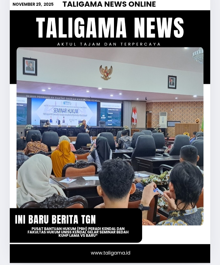 KENDAL, TALIGAMA.ID,- Pusat Bantuan Hukum (PBH) PERADI Kendal bekerja sama dengan Fakultas Hukum Universitas Selamat Sri (UNISS) Kendal menyelenggarakan seminar hukum dengan tema “Bedah KUHP Lama vs KUHP Baru dan Implikasi Kepastian Hukum Pidana di Indonesia” pada Sabtu (29/11/2025) di Gedung DPRD Kabupaten Kendal.