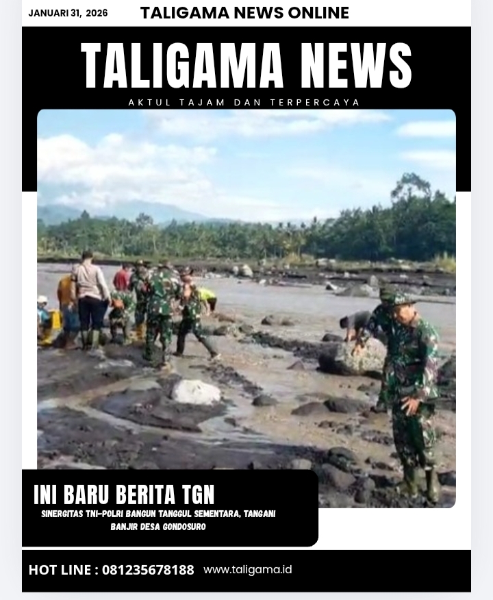 LUMAJANG, TALIGAMA.ID,- Dalam upaya menangani dampak banjir yang melanda Desa Gondosuro pada hari Jumat (30/1) kemarin, personel Tentara Nasional Indonesia (TNI) dan Kepolisian Negara Republik Indonesia (POLRI) bekerja sama secara sinergis untuk membangun tanggul sementara guna mencegah luapan air lebih lanjut dan melindungi pemukiman warga, Jumat (30/01/2026).