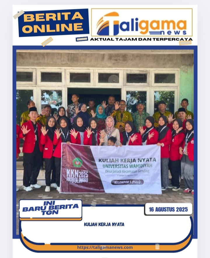 PROBOLINGGO, TALIGAMA.ID,-Solidaritas dari mahasiswa Universitas Wahidiyah Kediri dalam kegiatan Kuliah Kerja Nyata di Desa Jatiadi, Kecamatan Gending, Kabupaten Probolinggo. Menumbuhkan rasa kebersamaan dengan. Masyarakat desa tersebut, yang dimeriahkan dengan berbagai kegiatan dan hiburan untuk masyarakat Desa Jatiadi, Kecamatan Gending, dalam rangka memperingati Hari Ulang Tahun Kemerdekaan Republik Indonesia ke 80, yaitu adanya berbagai lomba dan pertandingan tradisional. Di antaranya 1, pertandingan voli antar dusun , desa Jatiadi , putera dan puteri. 2, selamatan ruwatan malam 17. Agustus, 3, karnaval desa 24 agustus 2025. D hbll. Kolaborasi Mahasiswa Wahidiyah dengan Pemerintah Desa Jatiadi, kecamatan Gending, Kabupaten Probolinggo dalam waktu yang relatif singkat , dapat memprakarsai berbagai kegiatan, yang sebelumnya di awali dengan diskusi panel pada 1 agustus 2025, membahas tentang produk unggulan daerah kabupaten Probolinggo