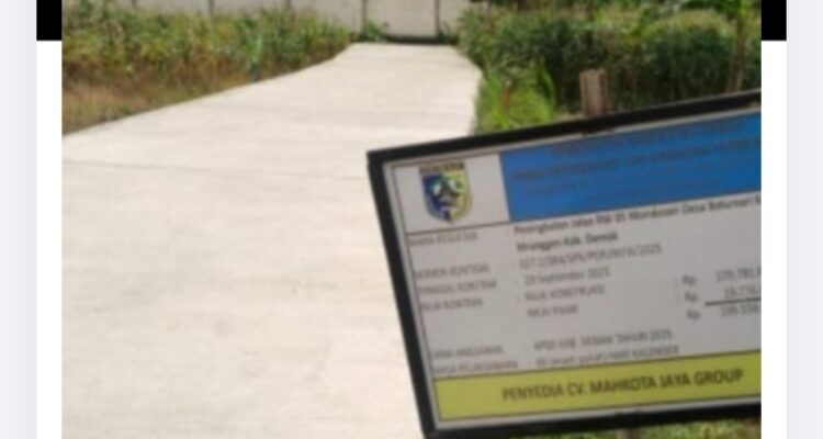 Proyek Betonisasi Jalan di Desa Batursari Kecamatan Mranggen Diduga Asal Jadi, Uang Rakyat Dipertaruhkan Topik Terkini|18 Desember 202518 Desember 2025oleh Tim Admin DEMAK, TALIGAMA.ID,– Proyek betonisasi jalan di RT 01 RW 08 Dukuh Tlogo,