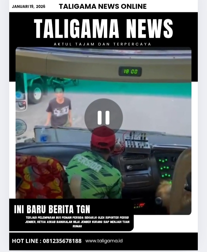 BANGKALAN, TALIGAMA.ID_ Bus milik persida sidoarjo dikabarkan mendajadi korban pelemparan batu paska laga melawan tuan rumah persid jember. Senin 19/01/2026