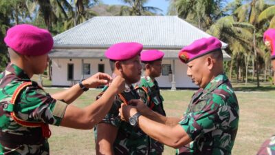 BANYUWANGI, TALIGAMA.COM – Upacara serah terima jabatan Bintara Utama (Bama) Pusat Latihan Pertempuran Marinir (Puslatpurmar) 7 Lampon dari Peltu Marinir Hartawan kepada Serka Marinir Kurniawan di Lapangan Puslatpurmar 7 Lampon Dusun Ringinsari Kec. Pesanggaran Banyuwangi Selasa Pagi (12/12/2023).
